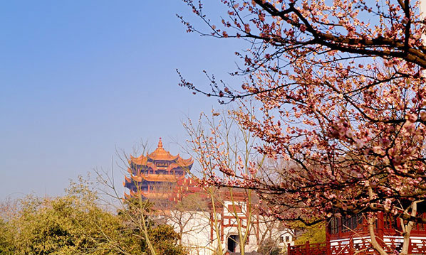 巍峨耸立于武昌蛇山的黄鹤楼,享有“天下绝景”的盛誉,与湖南岳阳楼,江西滕王阁并称“江南三大名楼”。黄鹤楼始建于三国时期吴黄武二年(公元223年),传说是为了军事目的而建,孙权为实现“以武治国而昌”(“武昌”的名称由来于此),筑城为守,建楼以嘹望。至唐朝,其军事性质逐渐演变为著名的名胜景点,历代文人墨客到此游览,留下不少脍炙人口的诗篇。唐代诗人崔颢一首“昔人已乘黄鹤去,此地空余黄鹤楼。黄鹤一去不复返,白云千载空悠悠。晴川历历汉阳树,芳草萋萋鹦鹉洲。日暮乡关何处是,烟波江上使人愁。”已成为千古绝唱,更使黄鹤楼名声大噪。